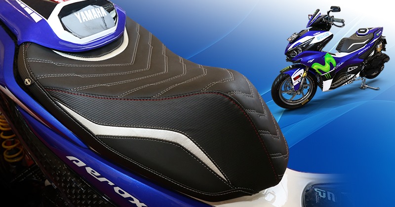 Konsep modifikasi bergaya MotoGP di Aerox 155 Old plus hadirnya jok motor custom bernuansa serupa bikin motor makin asyik dilihat dan pastinya bikin juri melirik.