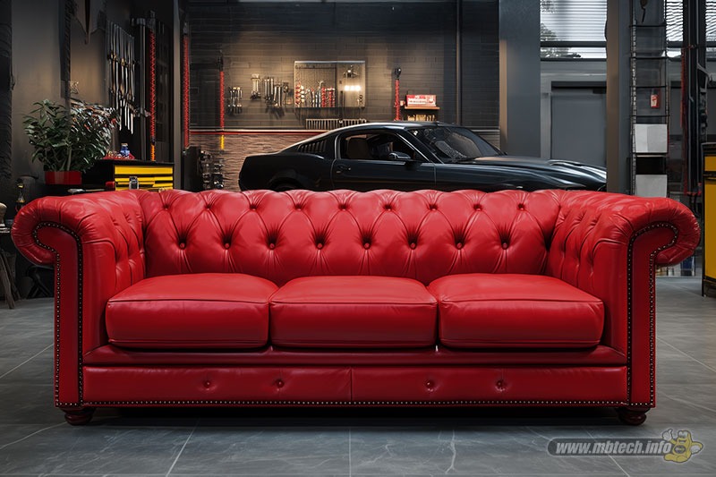 Dalam inspirasi kedua Mister MB menempatkan sebuah sofa chesterfield 3-seater dalam balutan warna menyala, yaitu Scarlet (MB 6027). Konsep ini cocok digunakan bagi Anda yang menyukai dekorasi klasik, termasuk koleksi mobilnya yakni mobil klasik.