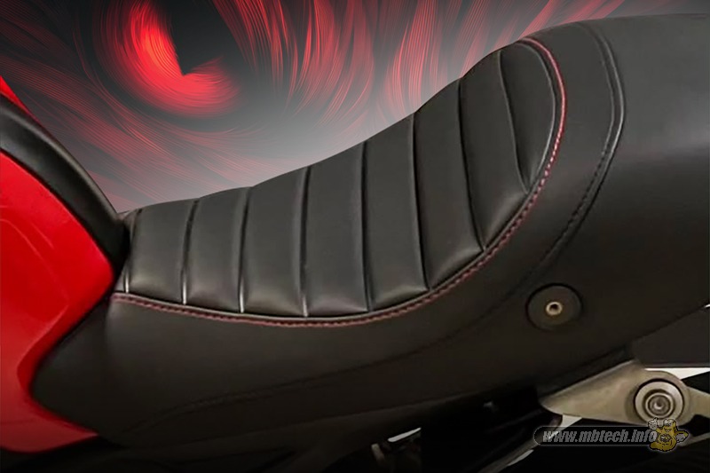 Serunya tidak hanya model press, jok naked bike ini juga dikasih pemanis berupa pembatas antara dudukan rider dengan pembonceng dengan desain seperti lipatan tipis.