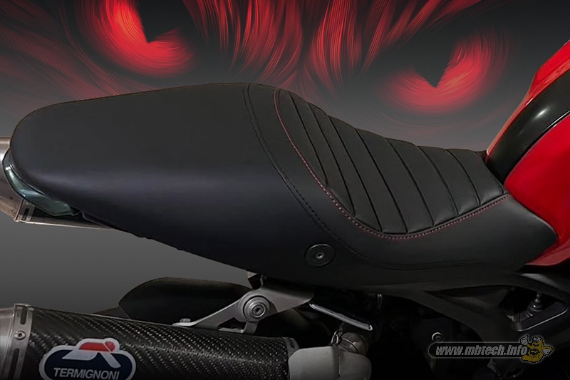 Hadirnya aplikasi jok custom dengan benang jahitan kombinasi silver dan hitam ini bikin Ducati Monster 696 terlihat awet muda dan tentunya nyaman dipakai riding di akhir pekan.