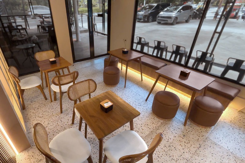Kapasitas café ini mampu menampung 14 orang di area berpendingin ruangan. Jika Anda ingin lebih seru cobalah duduk di teras, area outdoor ini dapat menampung tamu sejumlah 20 orang.