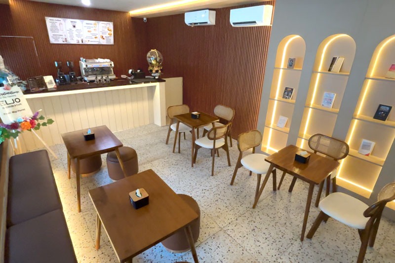 Benar Eljo café punya layout kompak, namun dibalik itu semua dan kecermatan desainer interior bikin suasana kafe itu tetap terasa luas. Selain masalah penggunaan furniture yang tepat guna, hadirnya dekorasi estetik plus tatanan cahaya lampu yang hangat ciptakan nuansa tersendiri.