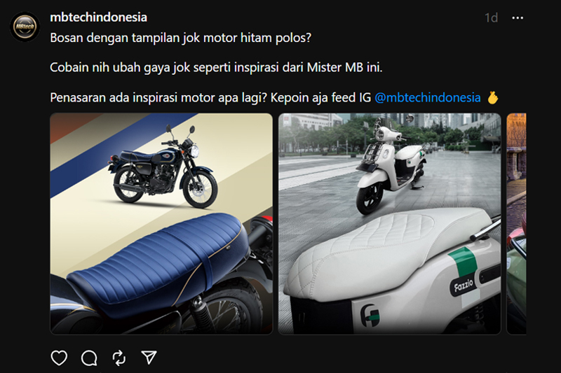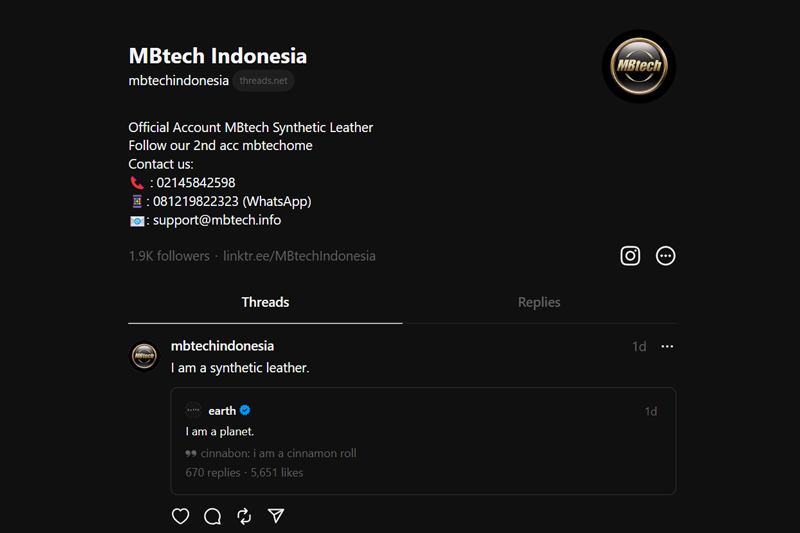 Bagi yang ingin berdiskusi atau menanyakan informasi seputar jok, interior mobil, furniture, interior desain dan tentang MBtech bisa langsung follow MBtech Indonesia di Threads ya.
