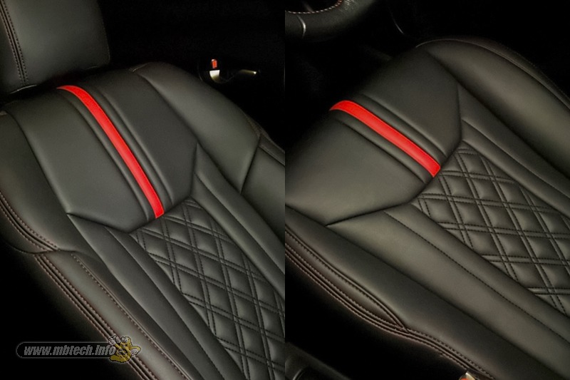 Haji Ijhu sebagai punggawa MGS Djok Kendari mengkombinasi motif wajik yang legendaris di area tengah dudukan/sandaran berwarna Black (MBPC 1001). Corak mewah nappa leather yang mendominasi kabin diperindah dengan kehadiran lis Red (MBPC 1010) di sisi motif wajik pada permukaan jok mobil.