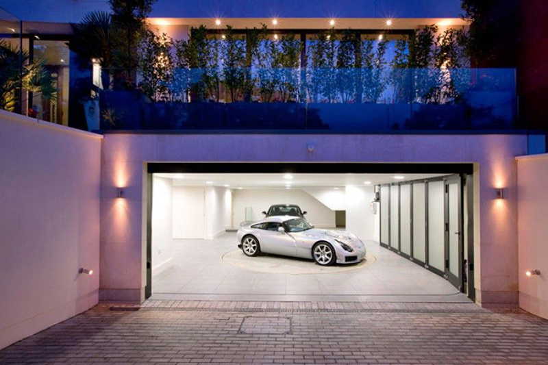 Rumah yang dirancang oleh Harrison Varma ini memiliki tampilan yang terlihat terbuka karena pengaplikasian pintu kaca di berbagai ruangan. Saat memasuki gerbang dan masuk ke garasi, Anda akan melihat adanya car turntable di bagian tengah ruang untuk memudahkan parkir mobil.