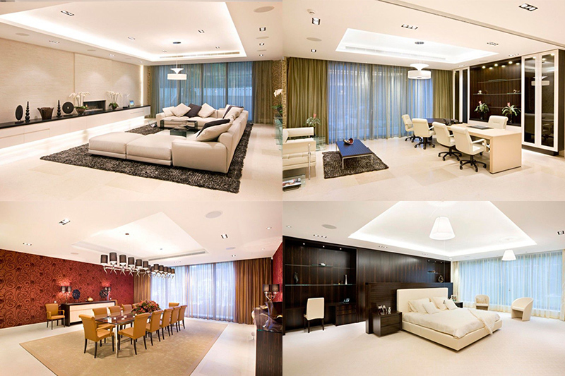 Lanjut masuk ke dalam, terdapat berbagai ruang yang menawan. Mulai dari ruang tamu, ruang makan, bar, ruang meeting hingga kamar tidur. Masing-masing ruangan dibuat cukup luas.