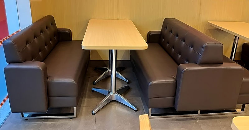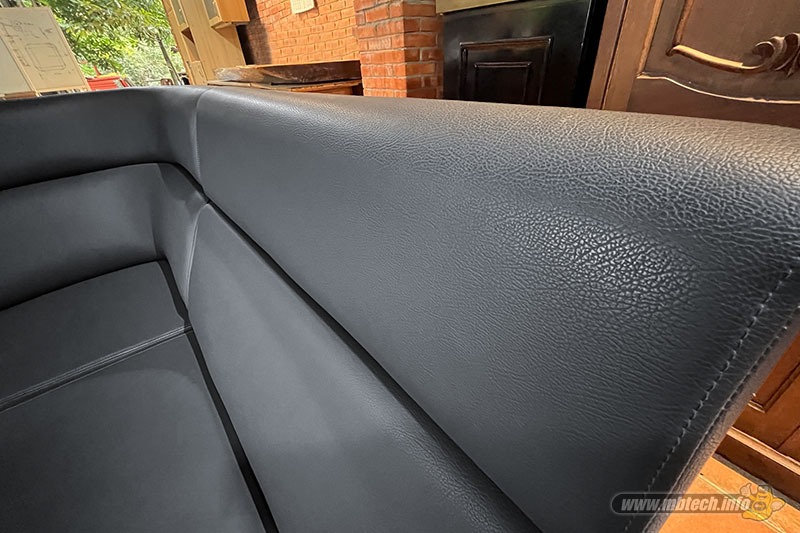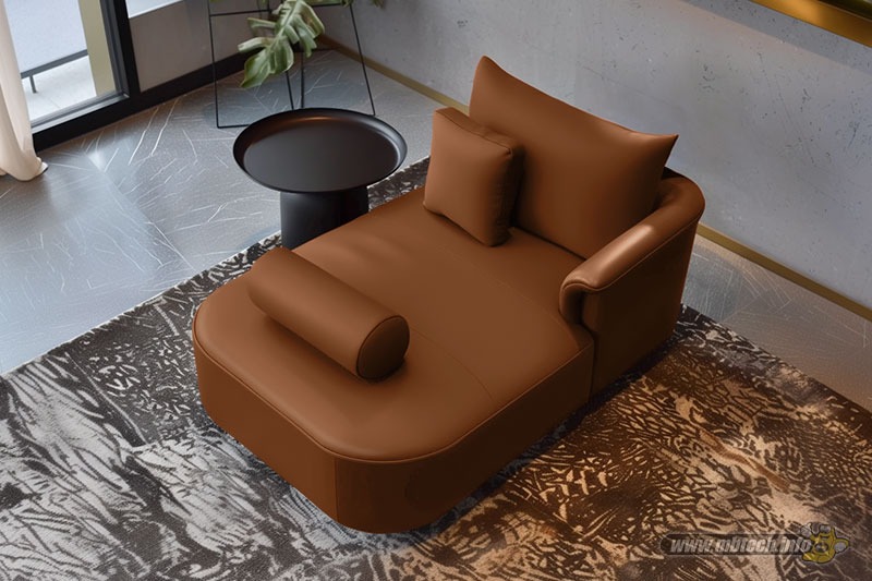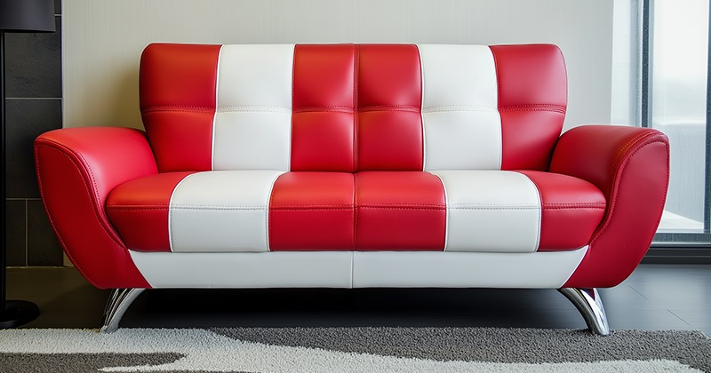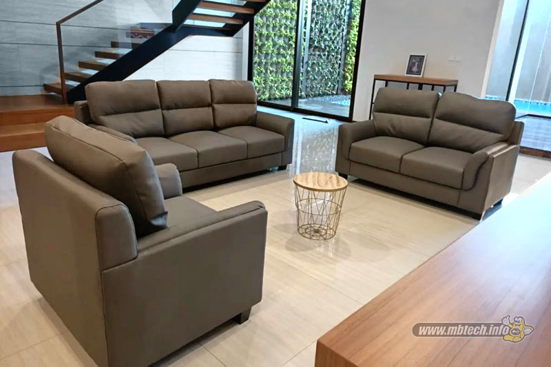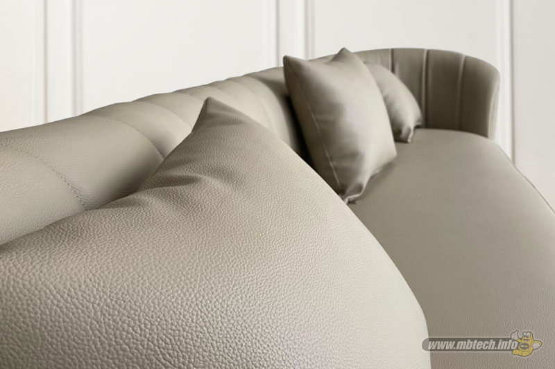 Detail sofa kulit sintetis premium bernuansa elegan, memberikan kesan mewah, stylish, dan cocok untuk interior modern minimalis.