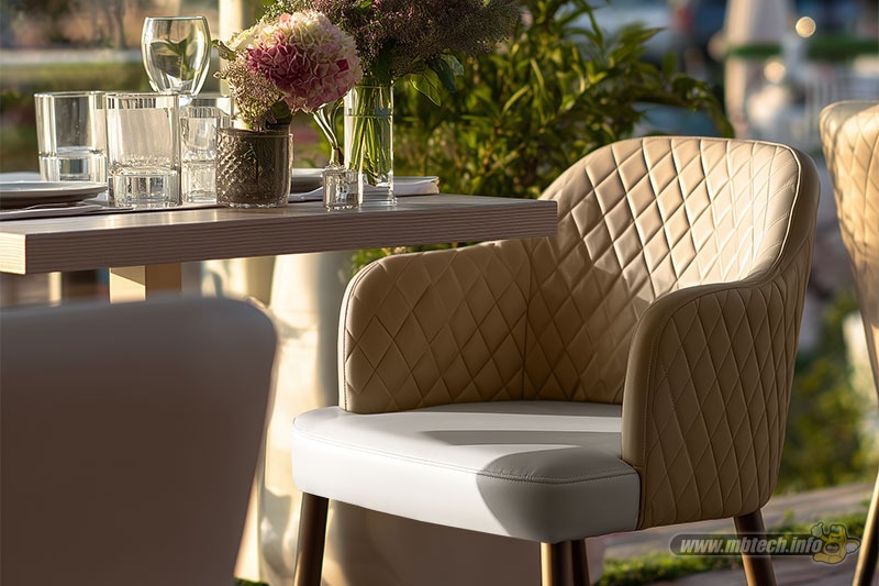 Sedangkan untuk area outdoor di restoran diperlukan kursi makan yang tahan terhadap cuaca namun tetap bergaya. Nah untuk itu MBtech dapat diandalkan oleh Anda. Sebagai material kursi masih serupa dengan kursi di area indoor, lalu material pelapis yang digunakan pun bernuansa two-tone memakai koleksi MBtech Premium-Carrera.