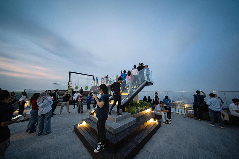 Anda bisa merasakan atmosfer ketinggian di ruang terbuka sambil menikmati pemandangan 360 derajat sebuah Ibukota Jakarta. Oh iya, ada juga wahana kursi ayun yang bisa Anda coba, tetapi ingat kalau phobia ketinggian jangan pernah ya!