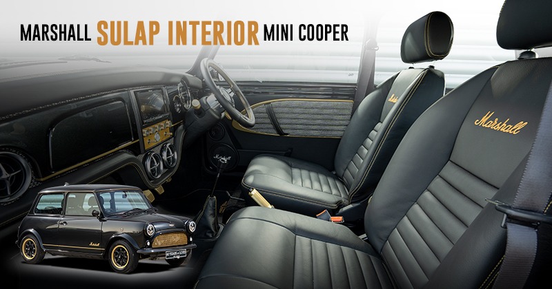 Lanjut ke desain jok bermotif classy, garis-garis ikonik, Marshall membalut jok itu dengan kulit. Kemudian aksen benang warna emas ditonjolkan pada tepian jok dan doortrim. Sebagai penutup bordir logo Marshall terpasang pada permukaan jok.