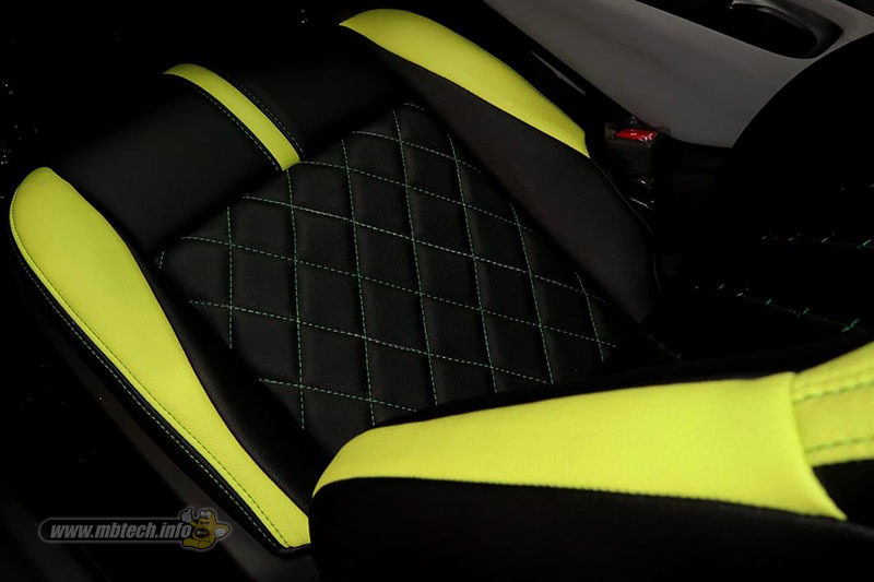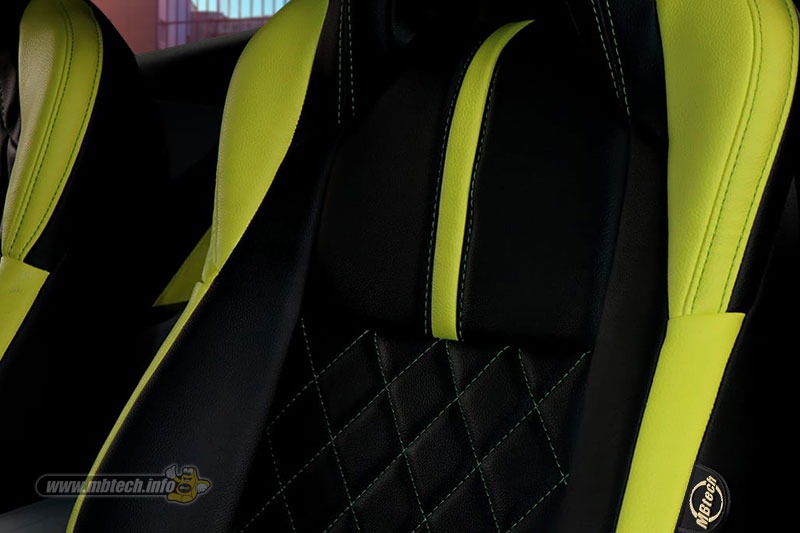 Sebagai penyeimbang, permukaan jok utama menggunakan warna Black (MB 9001) dari MBtech Camaro. Agar tampilannya tidak monoton, bagian dudukan dilengkapi motif diamond cut yang menambah kesan eksklusif.
