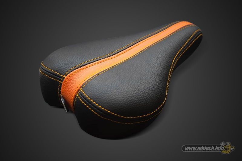 Seatmaker yang berlokasi di dalam perumahan Surya Asri I, Sidokepung, Buduran, Sidoarjo ini membuatkan desain anyar bermotif garis yang membelah area dudukan sadel berwarna a kepunyaan MBtech Camaro. Nah motif garis yang dimaksud itu adalah aksen berkelir Orange (MB 7003) dari bahan MBtech Camaro Fiesta.