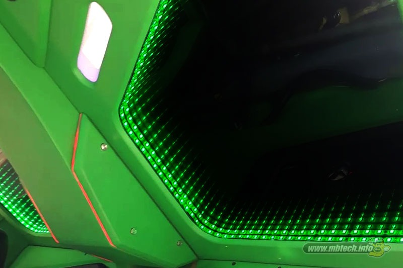 Tampilan interior dirombak menjadi jauh lebih keren. Dengan dilengkapi audio dengan ornamen lampu led di beberapa bagian kabin. Selain itu, seatmaker membuat tampilan jok tampil beda dengan balutan bahan MBtech.