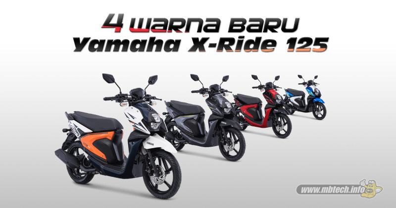 All New X-Ride 125 tampil dengan warna dan grafis baru dengan perpaduan warna kontras antara lain, Dynamic Blue (biru putih) dan Freedom White (putih oranye) yang berkarakter adventure serta Attractive Red (merah hitam) dan Exclusive Black (hitam abu-abu) untuk urban style.
