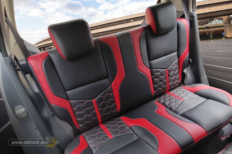 Pamungkasnya Shandy menambahkan motif desain hexagonal di permukaan dudukan/sandaran jok. Selesai? Belum, seatmaker yang baru mandiri setahun terakhir membuat kamuflase desain jok 2+2 di jok belakangnya. “Alasannya biar beda, karena jok standar Ayla enggak ada belahan tengahnya,” senyumnya.