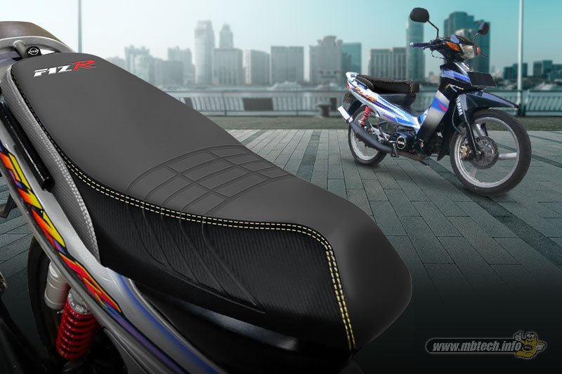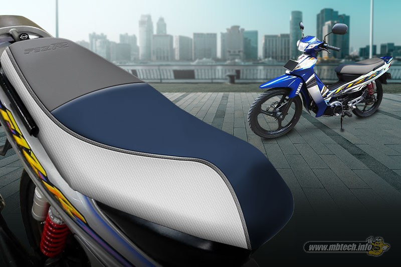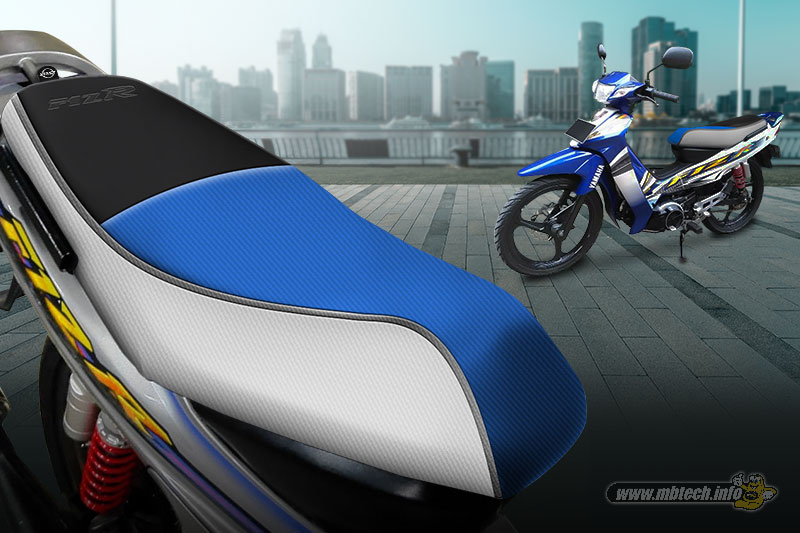 Untuk inspirasi selanjutnya, Mister MB menyajikan jok dengan menyesuaikan kelir bodi motor yang didominasi warna hitam-silver. Untuk pelapis jok bagian atas menggunakan warna Charcoal (MB 9002) dengan tambahan pres pada tengah jok. Lalu ditambahkan juga bordir tulisan F1ZR di bagian buntut. Sedangkan sisi samping jok memadukan 2 warna bermotif karbon, yakni Black (MBRC 2301) dan Grey dengan aksen jahitan berwarna krem dan putih.