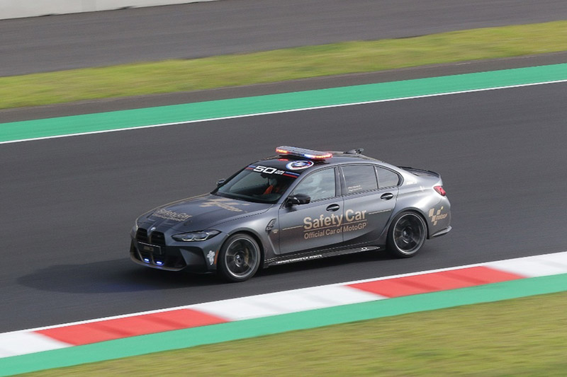 Safety car M3 itu menjadi kendaraan paling sibuk mengecek kondisi sirkuit yang tergenang air hujan untuk memastikan keamanan bagi pembalap MotoGP sebelum race utama kembali digelar.