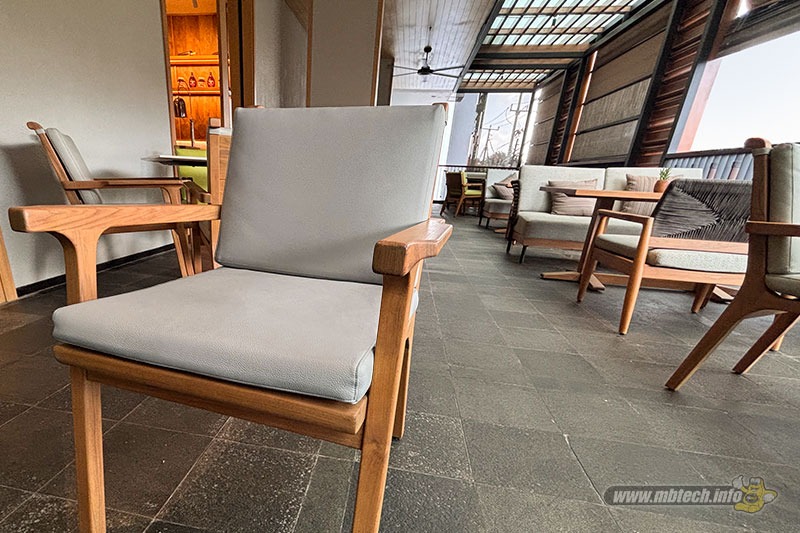 Suasana interior yang cozy makin terasa menyenangkan dengan hadirnya furniture bernuansa serupa interior lewat aplikasi kursi makan kayu jati buatan Jepara, Jawa Tengah. Warna alami dari kayu diimbangi dengan keberadaan dudukan kursi berbahan MBtech Camaro-Silver Grey (MB 9005).