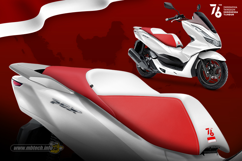 Sedangkan untuk motor PCX berkelir putih, Mister MB menerapkan warna sebaliknya, yakni warna White (MBPC 1003) pada bagian tengah jok, lalu warna Red (MBPC 1010) pada dudukan boncenger. Dan untuk sisi samping dilapisi warna Red (MBRC 2305) bertekstur karbon dari MBtech Riders – Cruiser.