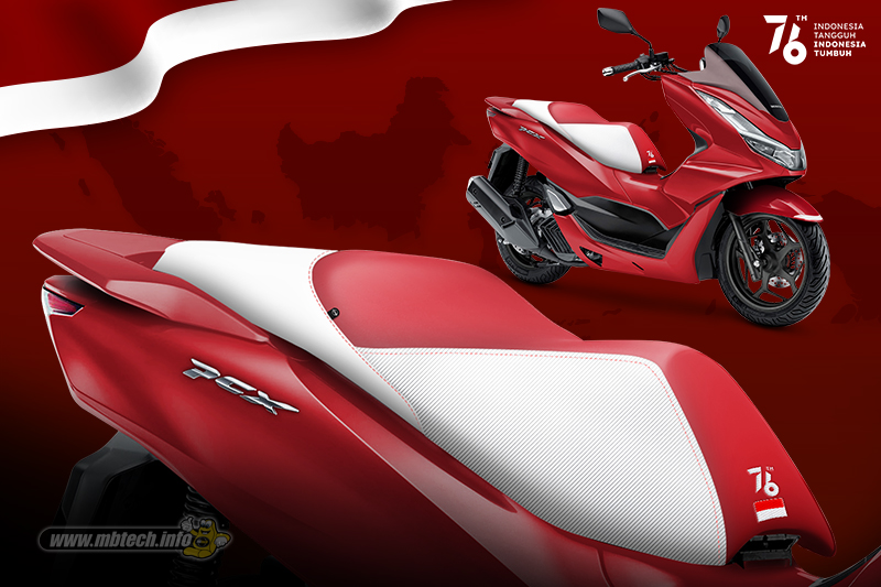 Mister MB akan mengkombinasikan warna merah putih dari dua varian, yakni MBtech Premium – Carrera dan MBtech Riders – Cruiser. Nah untuk jok pertama, motor PCX berkelir merah mengaplikasikan warna Red (MBPC 1010) pada bagian tengah jok. Lalu untuk bagian samping dan dudukan boncenger dilapisi warna White (MBRC 2303) bertekstur karbon dan White (MBPC 1003) bertekstur lembut seperti kulit nappa.