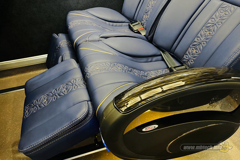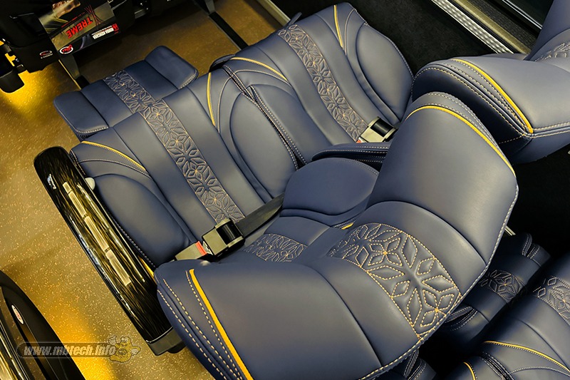 Nah istimewanya warna jok bus adalah hasil order khusus ke Mister MB. Pelapis jok berwarna Royal Dark Blue plus piping Golden Beige (MB 9008) milik MBtech Camaro bikin kabin terasa hangat dan juga serasi dengan warna eksterior dari bus pariwisata berspesifikasi kelas atas tersebut.