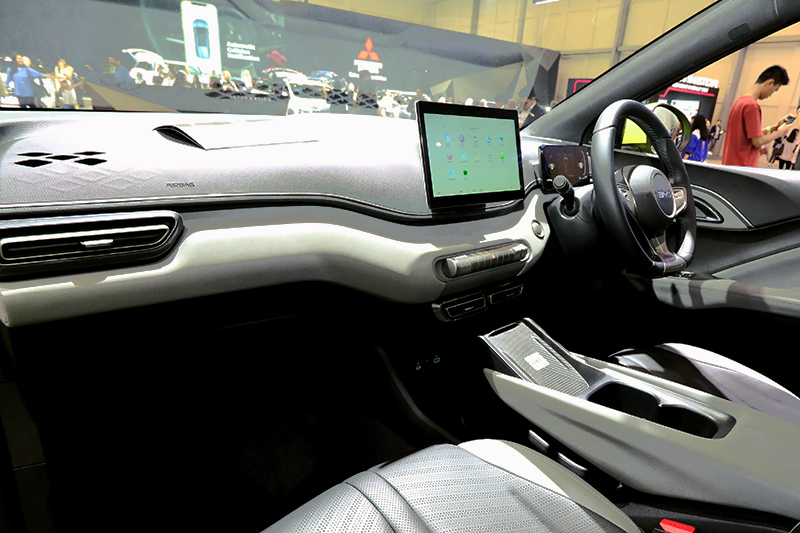 Masuk ke dalam interior, terlihat desain dasbor dirancang ergonomis dengan head unit touch screen yang mendukung Apple Car Play & Android Auto. Untuk warna interior dibuat gelap agar kesan mewah tercipta, lalu model joknya tampil menawan yang bikin city car ini berkelas.