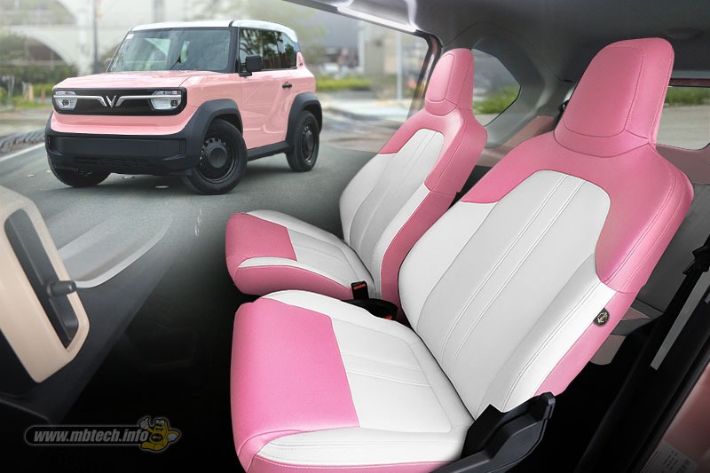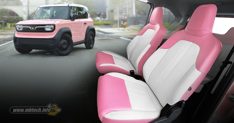 Ladies driver bisa memilih Vinfast VF3 berwarna Rose Pink. SUV imut ini makin terlihat lucu dan stylish berkat aplikasi pelapis jok bernuansa senada. Maka Mister MB mewarnainya dengan bahan MBtech Camaro Fiesta Pink Cadillac (MB 7015) untuk sisi samping serta ujung permukaan dudukan dan sandaran kepala. Berbeda dengan bahan MBtech Camaro Off White (MB 9006) yang mengisi setengah permukaan dudukan jok. “Cute….”