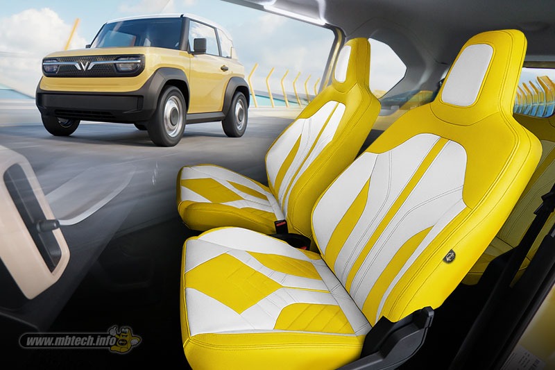 Khusus di Vinfast VF3 berkelir cerah nan mencolok, yaitu kuning maka Mister MB memasukkan elemen warna pisang ini ke dalam interior. Desainnya dirancang stylish khas anak muda, dengan kombinasi grafis yang menarik. Untuk warna dominan ialah Lemon (MB 7005) milik MBtech MBtech Camaro Fiesta. Sisanya yang menjadi warna kombinasi adalah Off White (MB 9006) dari MBtech Camaro.