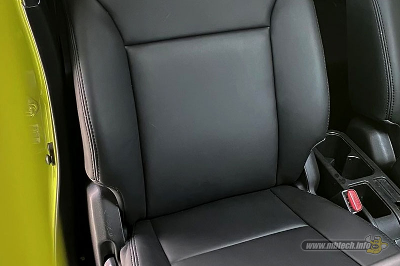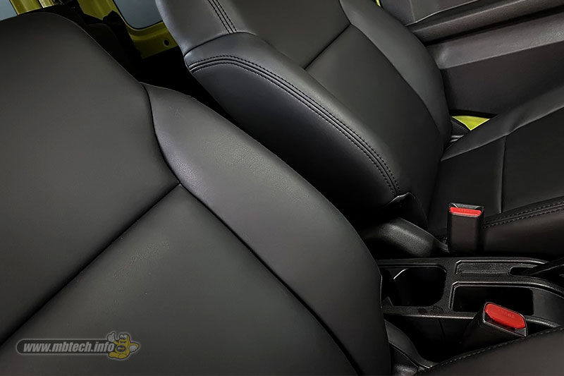 Hal ini seperti yang dilakukan oleh pemilik Suzuki Jimny berkelir Kinetic Yellow ini. Jok standar bawaan yang berbahan fabric diganti dengan bahan MBtech Premium – Carrera yang memiliki tekstur lembut kulit nappa.