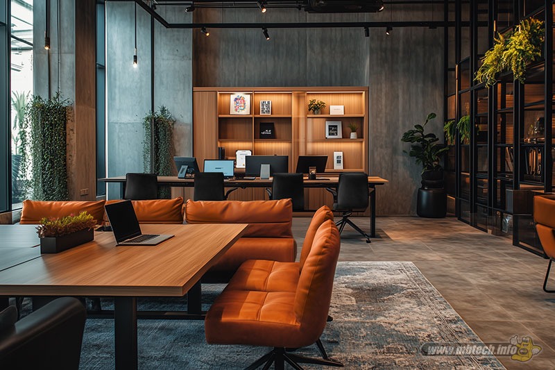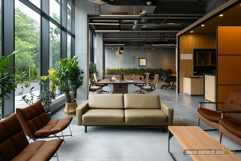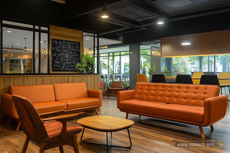 Mengawali inspirasi, Mister MB merilis desain kursi kantor yang punya busa tebal ala sofa gendut dengan pelapis MBtech Giorgio berwarna Pumpkin (MB 6026). Lalu kursi kantor bergaya minimalis juga turut dilapis MBtech Giorgio berwarna Graphite (MB 6002). Kehadiran warna pelapis tersebut bikin suasana ruangan co-working space terlihat kontras dan menarik.