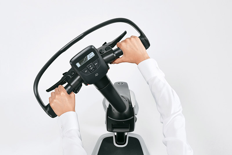 Cara pengoperasiannya cukup menarik tuas pada setang untuk menjalankan dan melepaskannya otomatis skuter berhenti. Lalu fitur di kemudi C+walk juga tersedia tombol on/off lampu, klakson, dan pengatur kecepatan.