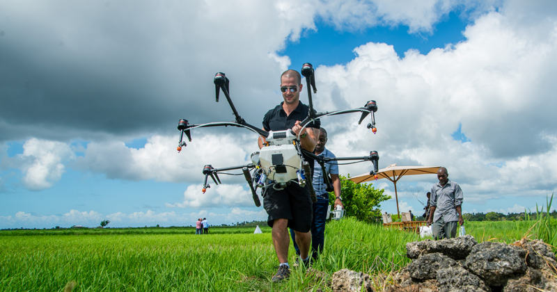 Produsen drone, DJI bersama Zanzibar Malaria Elimination Program (ZAMEP) melakukan kerjasama pembasmian wabah malaria negara Zanzibar, Afrika. Wujud kerjasama ini dilakukan oleh DJI dengan memberikan bantuan alat kerja berupa drone bernama DJI MG-1S yang diciptakan khusus untuk kebutuhan sektor pertanian.