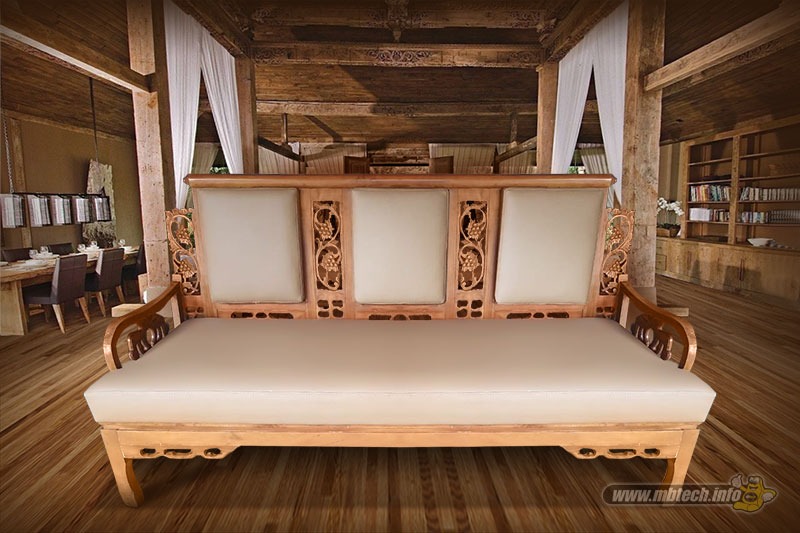 Rafyndo juga merestorasi kursi kayu tiga dudukan yang memiliki ukiran cantik pada beberapa bagian. Kursi ini dibalut dengan warna Mocca (MB 9011) dari MBtech Camaro.