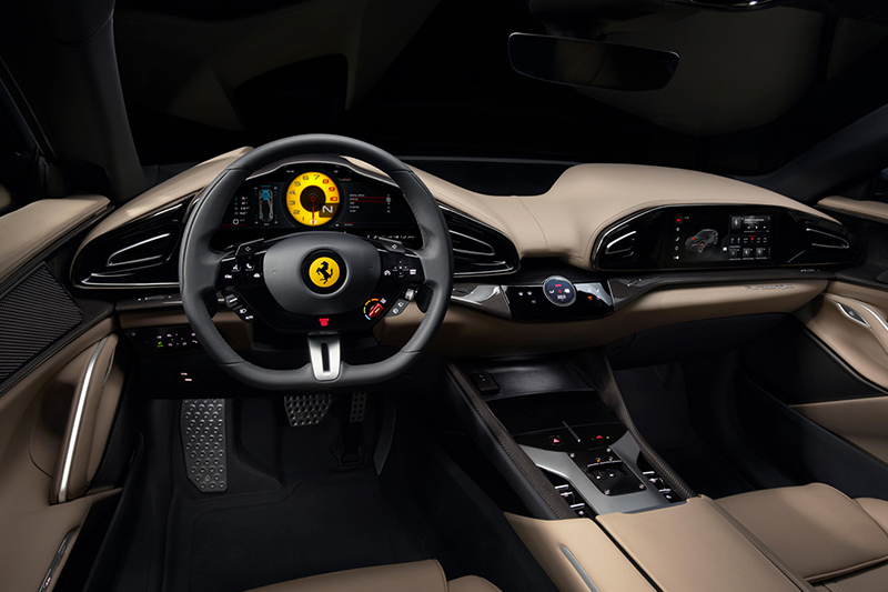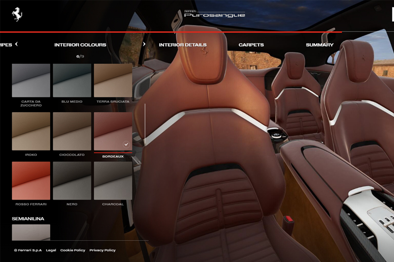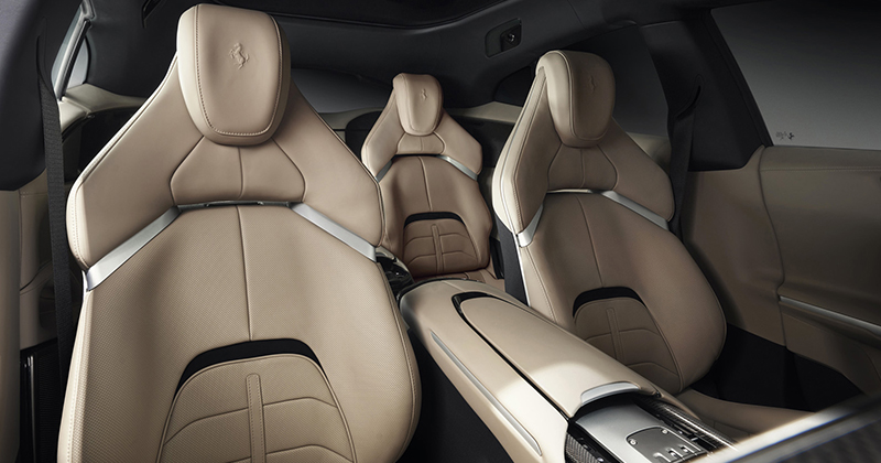 Selanjutnya ada jok dengan susunan 2+2 yang di mana bagian belakang hanya dapat menampung dua penumpang saja. Karena adanya sekat konsol di antara seat. Asyiknya, Ferrari menyediakan personalisasi bagi pemesanan produknya.