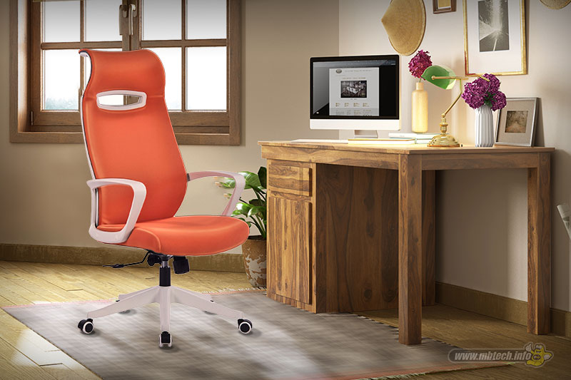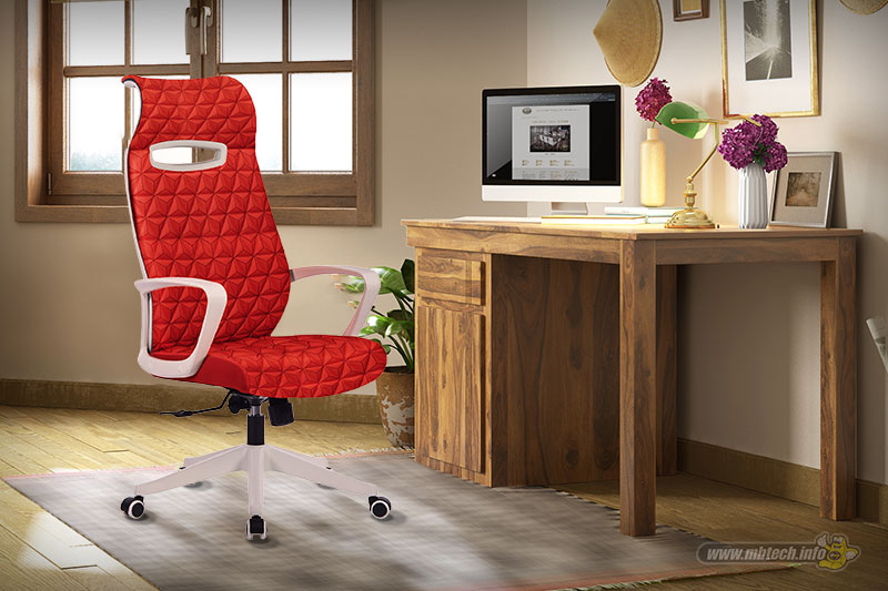 Desain kursi satu ini terinspirasi dari buah tomat. Warna segar dari tomat diyakini mampu menambah semangat bekerja. Kursi bergaya modern itu dilapis kulit sintetis MBtech Camaro Fiesta berwarna Tomato (MB 7002). Motif polos pada permukaan kursi dapat dibuat indah tampilannya dengan mewarnai arm rest dan kaki kursi yang menjadikannya terlihat kontras.