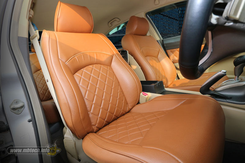 Urusan gaya di interior, sedan ini tak kalah menarik dengan eksteriornya. Sang pemilik melapis ulang kabin menggunakan kulit sintetis MBtech Camaro. Hadirnya pelapis berwarna Roadstar (MB 9016) kian menambah aura kemewahan di interior.