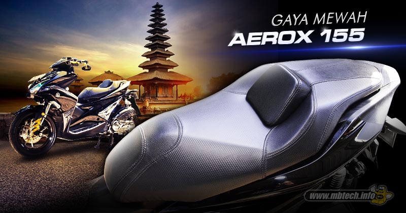 Penggunaan bahan jok dipilih dari tekstur karbon milik MBtech Riders Black (MBRC 2301) dipadukan motif kulit dari MBtech New Superior Black (MB 8801) , sedangkan komposisinya diletakkan selang-seling mengikuti pola rancangan yang telah ditentukan. Edy masih mempertahankan figur busa asli Aerox 155, namun ada sedikit pemangkasan busa di bagian pengendara dan tak lupa diberikan tambahan sandaran kecil untuk bokong berdesain kotak. Untuk pola jahitan dipilih model double stitch dengan warna hitam. Cocok buat inspirasi kan?