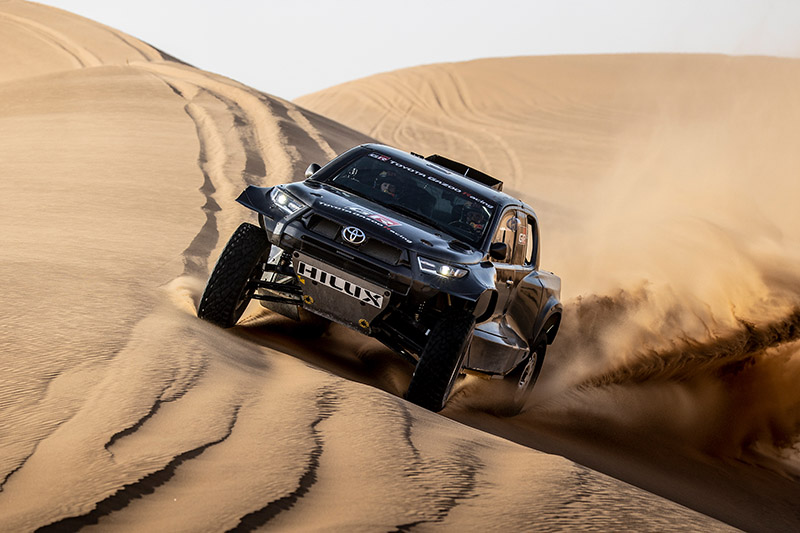 Toyota GAZOO Racing menyiapkan All New Toyota GR DKR Hilux T1+ untuk berkompetisi di balap gurun pasir terakbar itu. Sedangkan spesifikasinya mengacu ke regulasi kategori mobil T1.