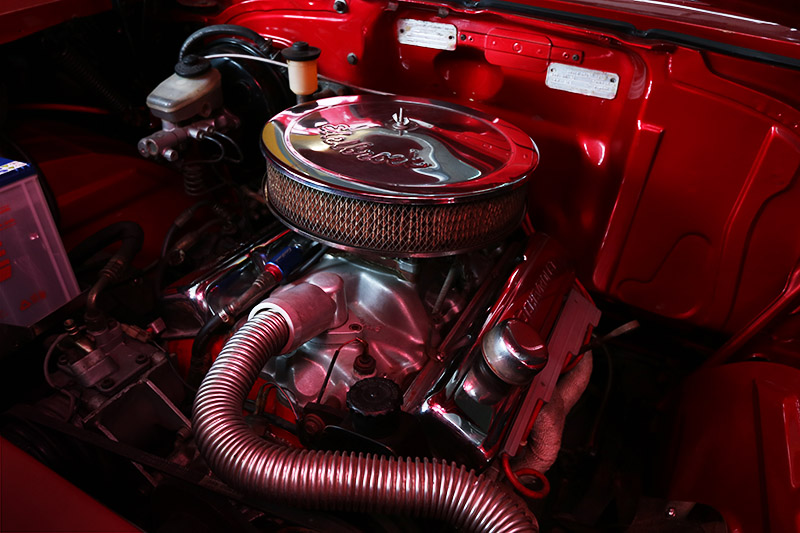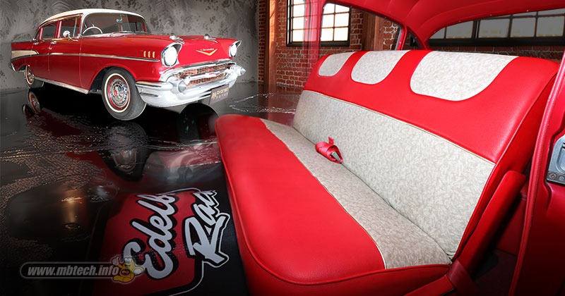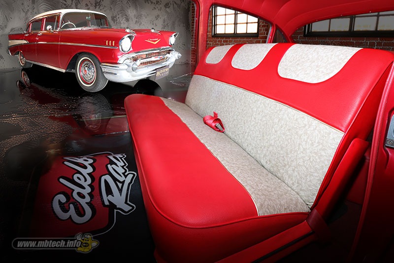 Pemuda yang berkerja sebagai desainer interior ini selain merestorasi bodi dan suku cadangnya, Kris juga mempercantik interior Bel Air dengan konsep warna senada antara eksterior dan interior yaitu merah pada mobil bermesin V8 small block ini.