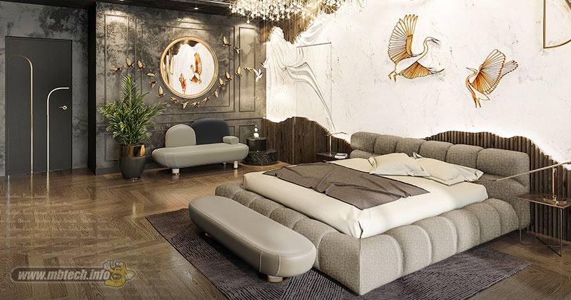 Seperti hadirnya warna pelapis sofa bernuansa elegan dari MBtech Giorgio. Warna seperti Fossil (MB 6004) dan Graphite (MB 6002) dipercaya melapis sofa dan bench yang ada di kamar. Nuansa artistik pun hadir di kamar hotel lewat pemakaian bahan MBtech Picasso berwarna Grey (MB 5002) pada rangka ranjang.