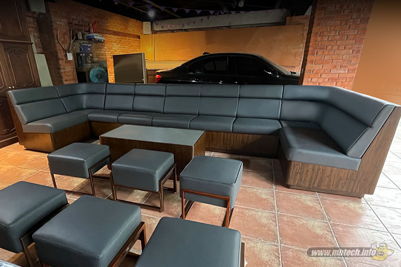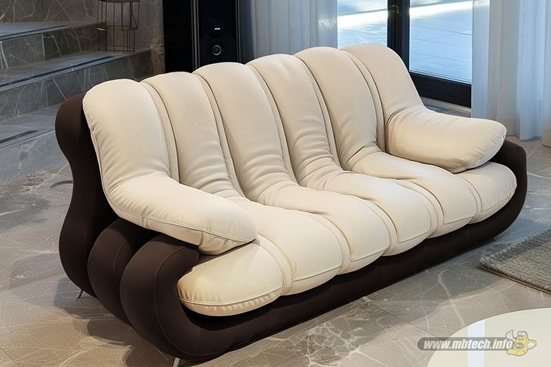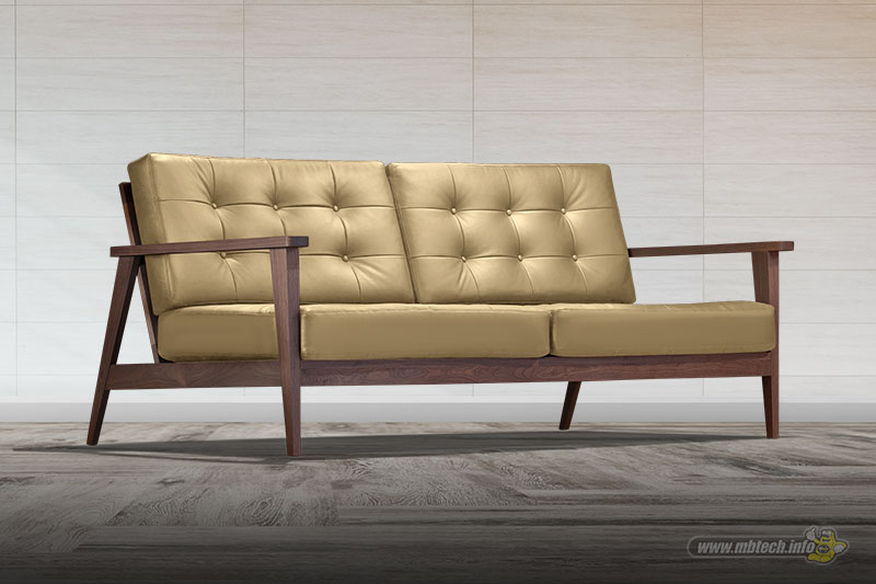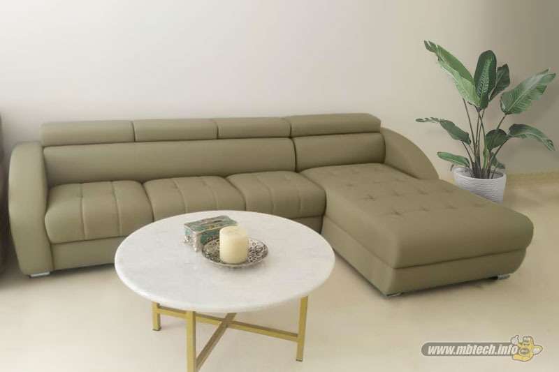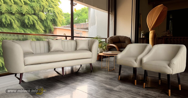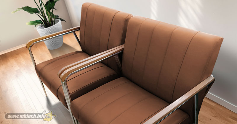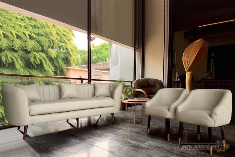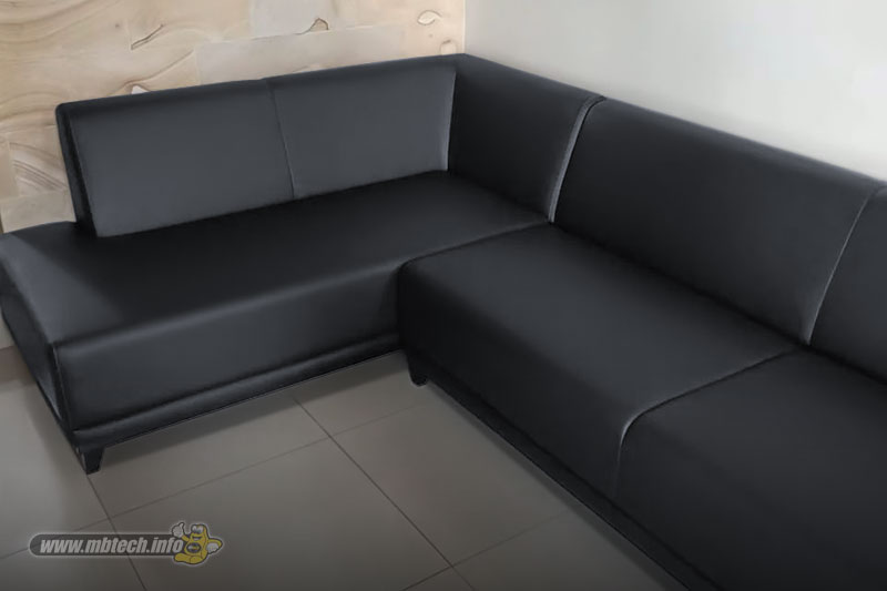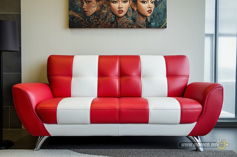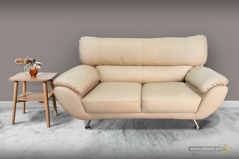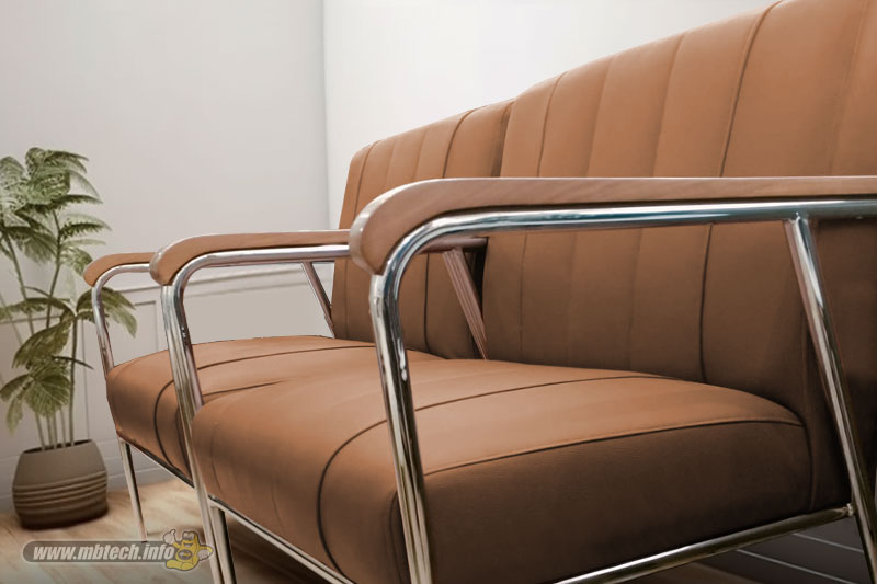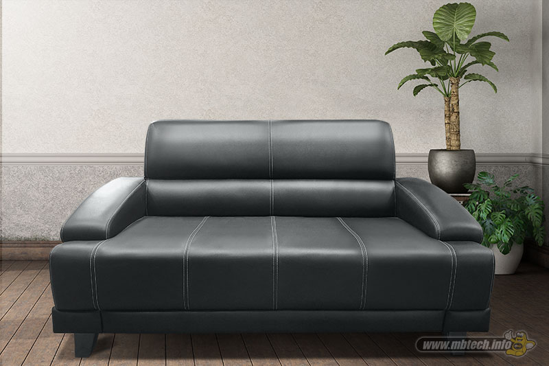 Detail sofa kulit sintetis premium bernuansa elegan, memberikan kesan mewah, stylish, dan cocok untuk interior modern minimalis.
