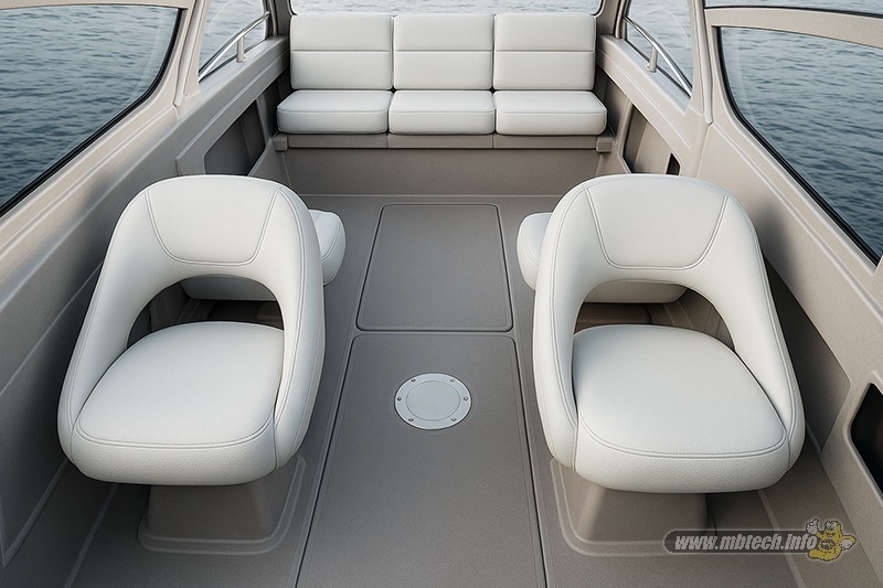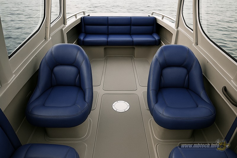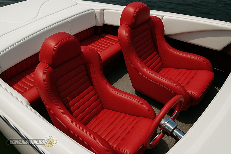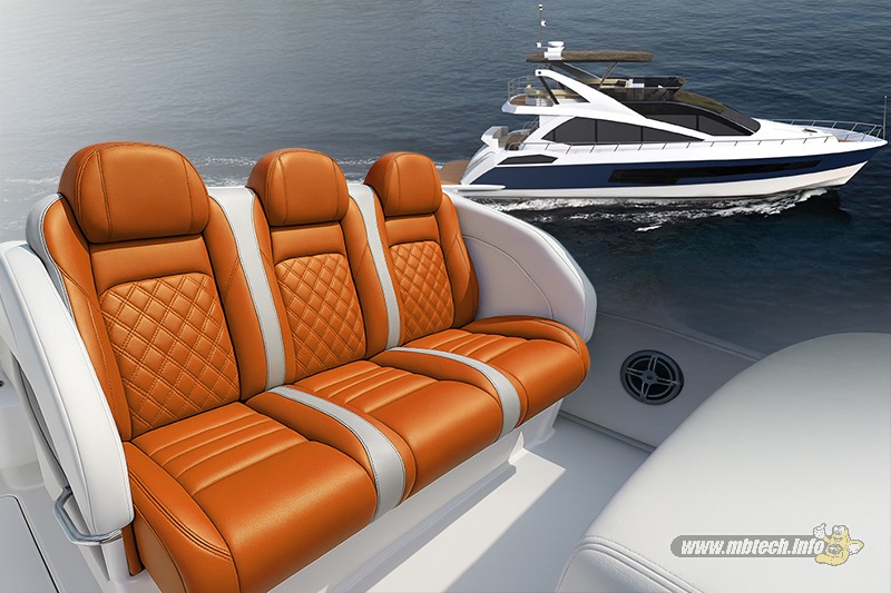 Selanjutnya masih di jenis speed boat rekreasi yang sama, Mister MB kali ini berikan sentuhan berbeda yang punya atmosfer laut dan langit yang bernuansa biru. Untuk itu bahan pelapis MBtech Giorgio warna Sapphire (MB 6033) melapis kursi yang punya motif simpel ini.