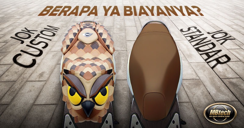 Berbeda kalau jok motor Anda ingin tampil ikonik atau mungkin lebih personal. Khusus di bagian ini harganya berbeda dan dihitung custom. Semakin banyak variasi dan sulitnya desain ikut melambungkan harga jual jok MBtech jenis custom. Setidaknya dipasaran terpantau dibanderol Rp 300 ribu hingga jutaan rupiah.