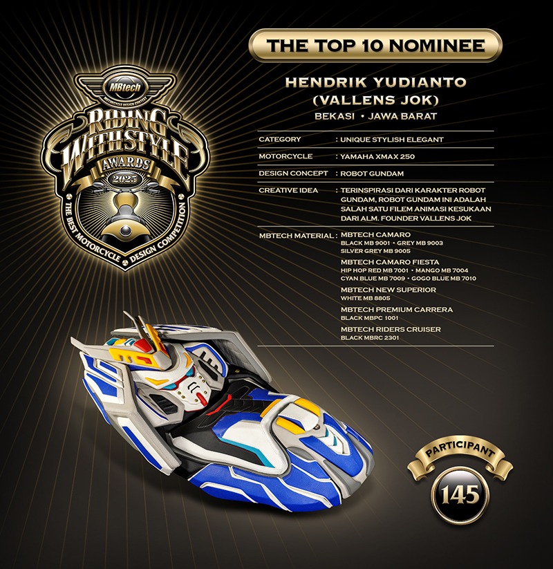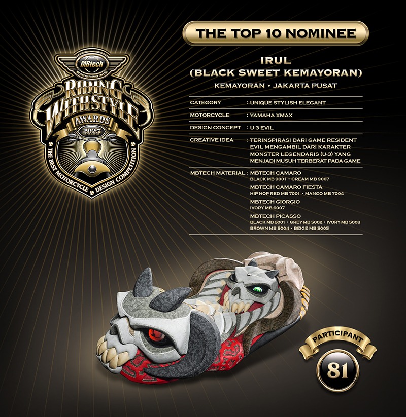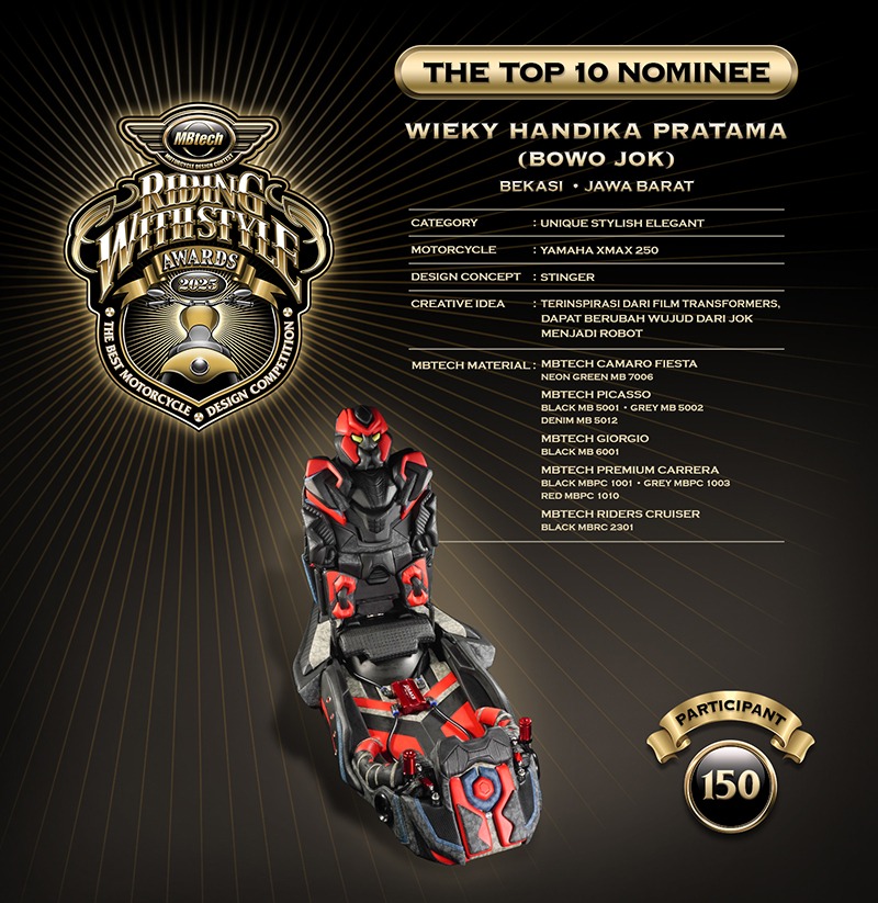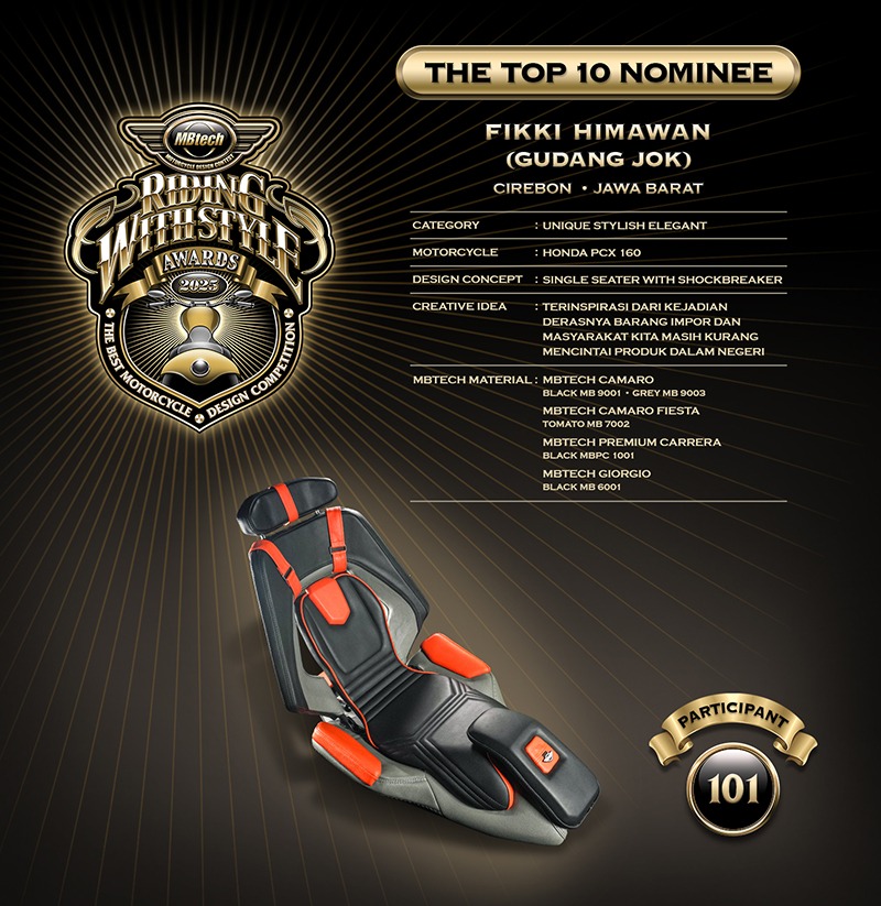 Selamat kepada peserta MBtech RWSA 2025 yang berhasil lanjut ke tahap berikutnya yaitu babak Top 10 MBtech RWSA 2025. Penilaian fisik karya ke-10 jok motor tersebut dilakukan di kantor MBtech, Kelapa Gading, Jakarta Utara.