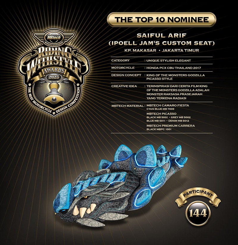 Hasil modifikasi jok motor dari para peserta yang lolos sungguh kreatif dan out of the box desainnya. Pastinya memusingkan para juri ketika melakukan penjurian langsung dengan mengecek karya jok secara detail dan teliti.