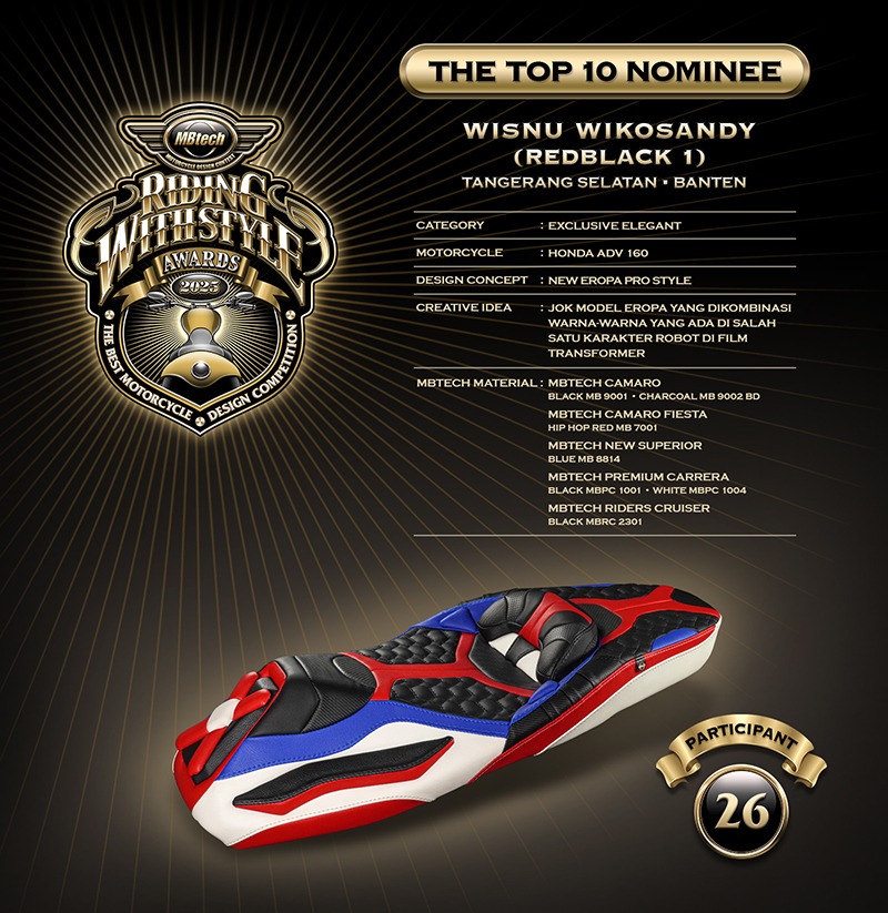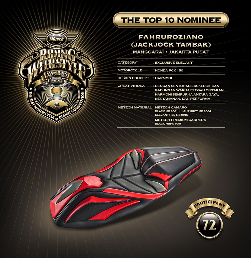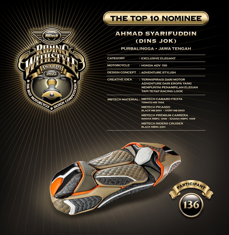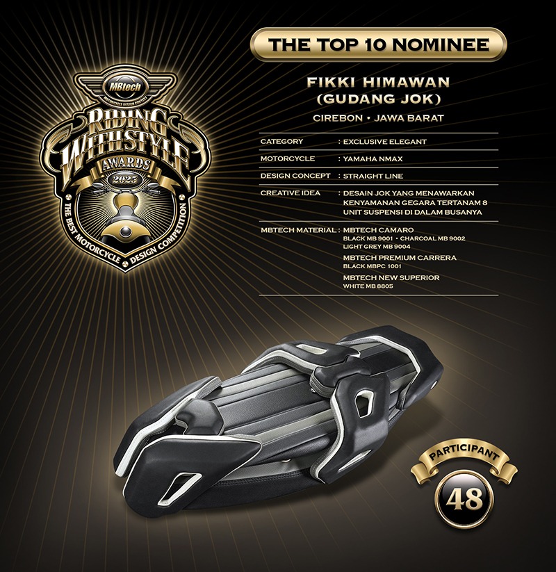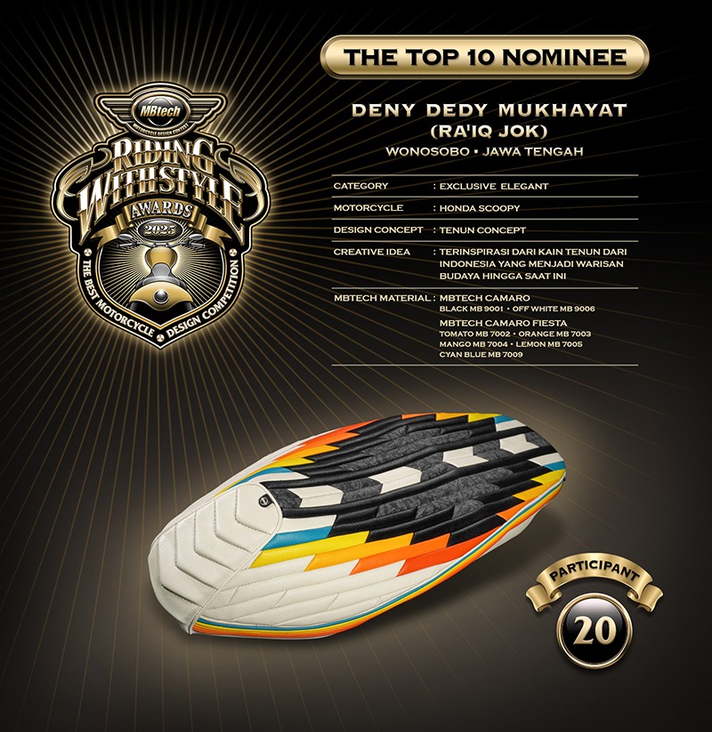 Selamat kepada peserta MBtech RWSA 2025 yang berhasil lanjut ke tahap akhir penilaian kontes jok motor online yang dihelat di group Facebook MBtech RWSA 2025, yaitu Top 10 MBtech RWSA 2025.