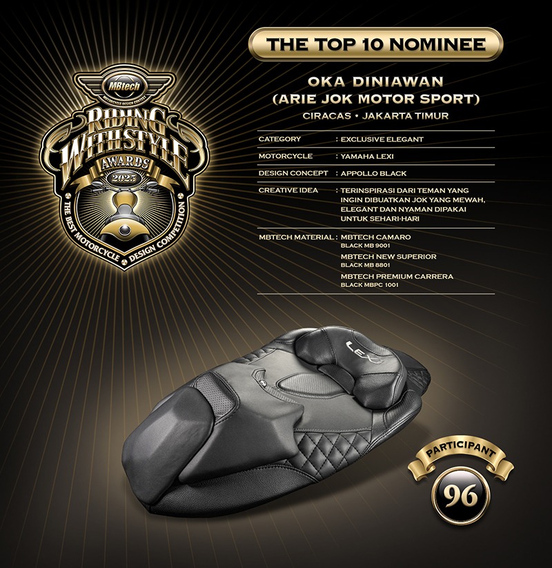Singkat kata akhirnya keluar 10 nama peserta yang siap dinilai kembali demi meraih gelar jok terbaik di kategori Exclusive Elegant, dan berikut daftarnya berdasarkan urutan nomor peserta.