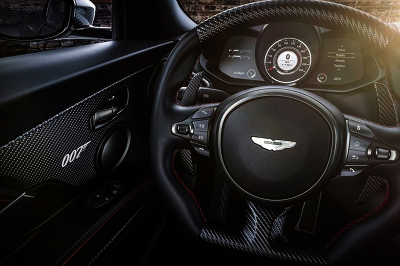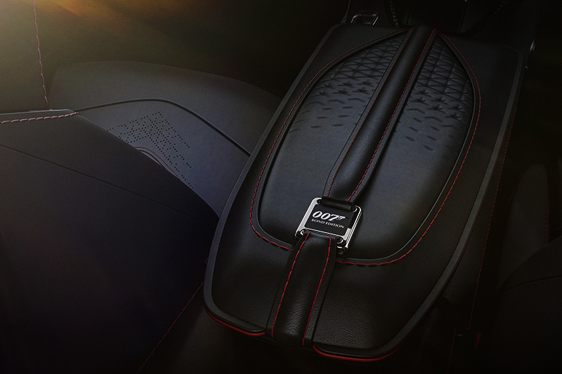 Tampilan interior mobil yang menggendong mesin 5.2 liter V12 twin-turbocharged ini memiliki nuansa hitam yang sporty. Tersemat juga ornamen simbol 007 di berbagai sudutnya. Terlihat, kalau jok dibalut bahan kulit premium berwarna hitam.