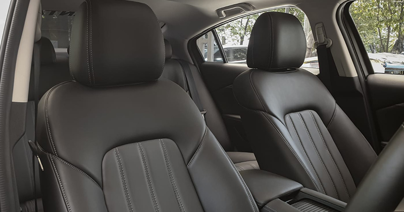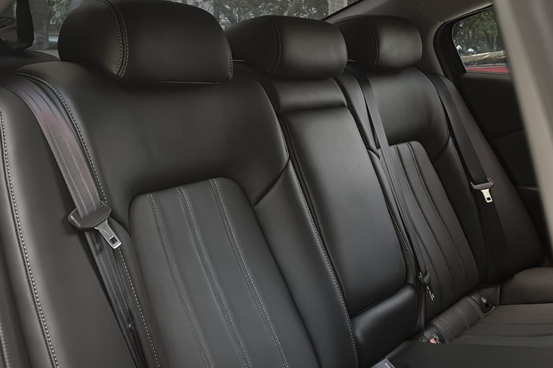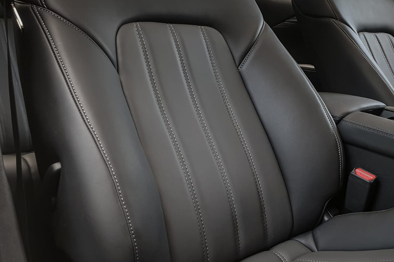 Warna yang digunakan adalah Black (MBPC 1001) dan Charcoal (MBPC 1002) dari MBtech Premium – Carrera. Untuk model jok dibuat original look dengan motif garis vertikal pada bagian sandaran hingga dudukan. Motif tersebut dibuat dengan jahitan ganda menggunakan benang warna silver.