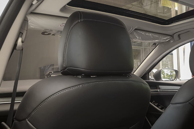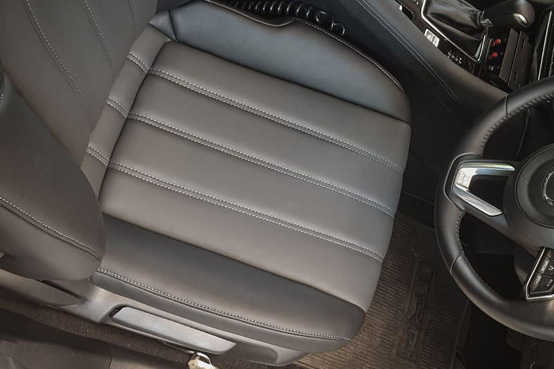 “Pemilik mobil Ingin upgrade pada bagian joknya, dikarenakan masih menggunakan bahan fabric. Sedangkan doortrim & center console sudah menggunakan bahan soft touch. Alasan memilih bahan MBtech Premium - Carrera karena dari warna & teksturnya hampir menyerupai bahan soft touch original dari Mazda6 tersebut,” jelas Andi.